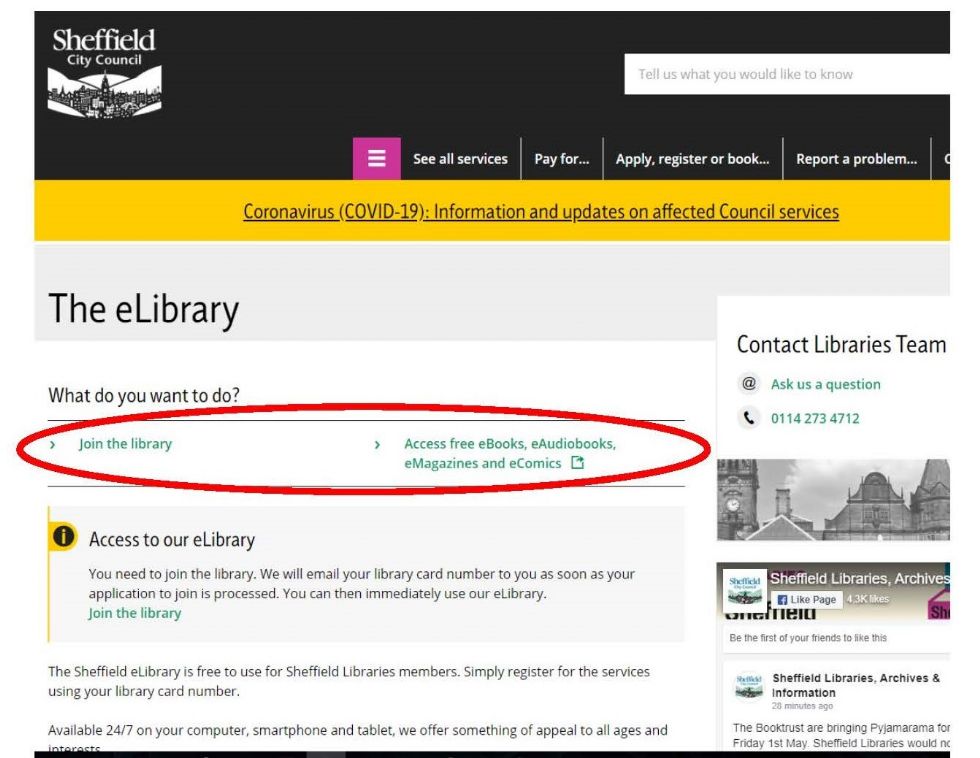 Search for Sheffield City Library and click on ‘The eLibrary’ or click here
